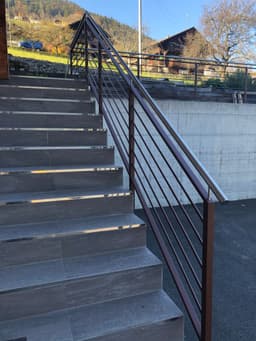 Les gardes-corps sont complètement en inox avec une partie brossé et l'autre thermolaquée.