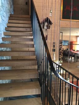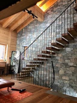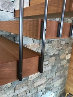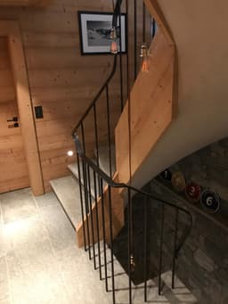 Tous les barreaux sont scellés au sol, il a fallut percer précisément les planchers en vieux bois; la pierre et les limons d'escalier.