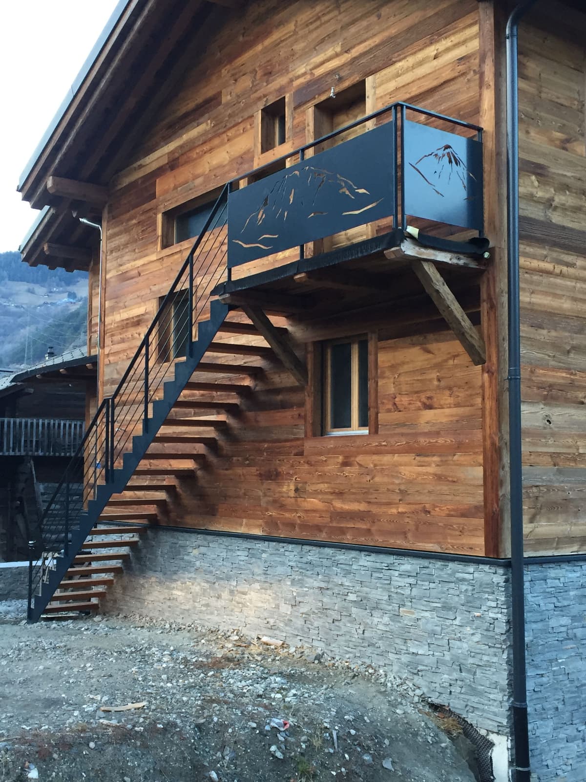 Garde-corps palier avec tôle découpe laser motif "Catogne".