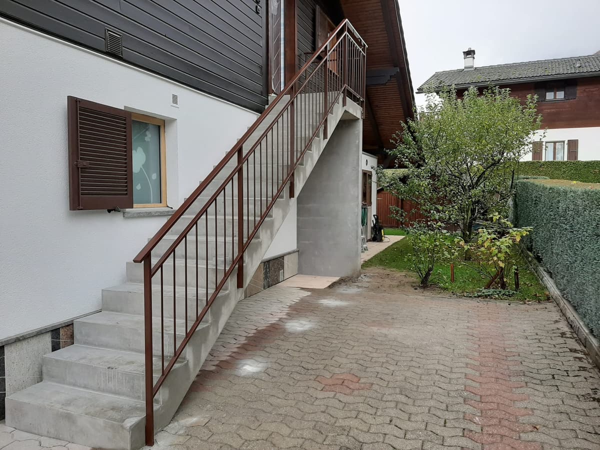 Garde-corps sur escalier en béton préfabriqué à Chemey.