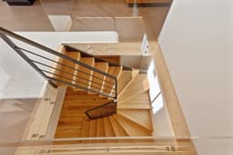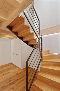 L'escalier est fixé sur un seul côté, le collage des marches et contre-marches assure sa rigidité.