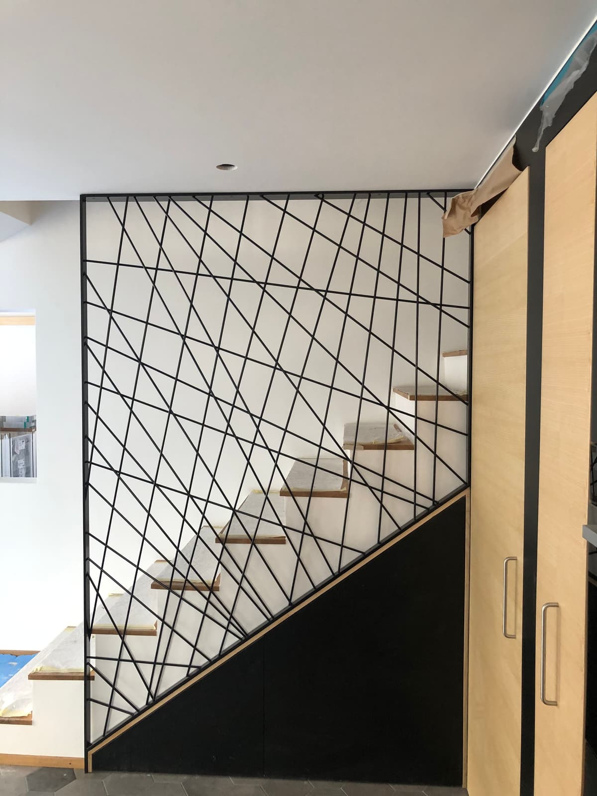 Gardes-corps extérieur et intérieur toujours avec le même style d'un répartition aléatoire des barreaux .