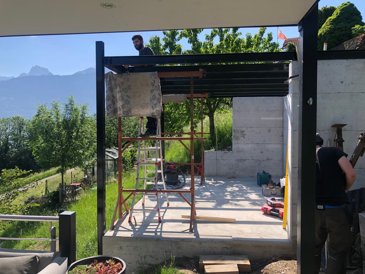 Charpente métallique pour toiture patio.