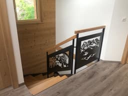 Limon et garde-corps en acier brut. Découpe personnalisé dans les tôles selon choix du client.