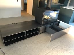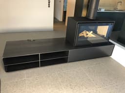 Meuble TV avec cheminée dans une villa d'architecte à Ardon.